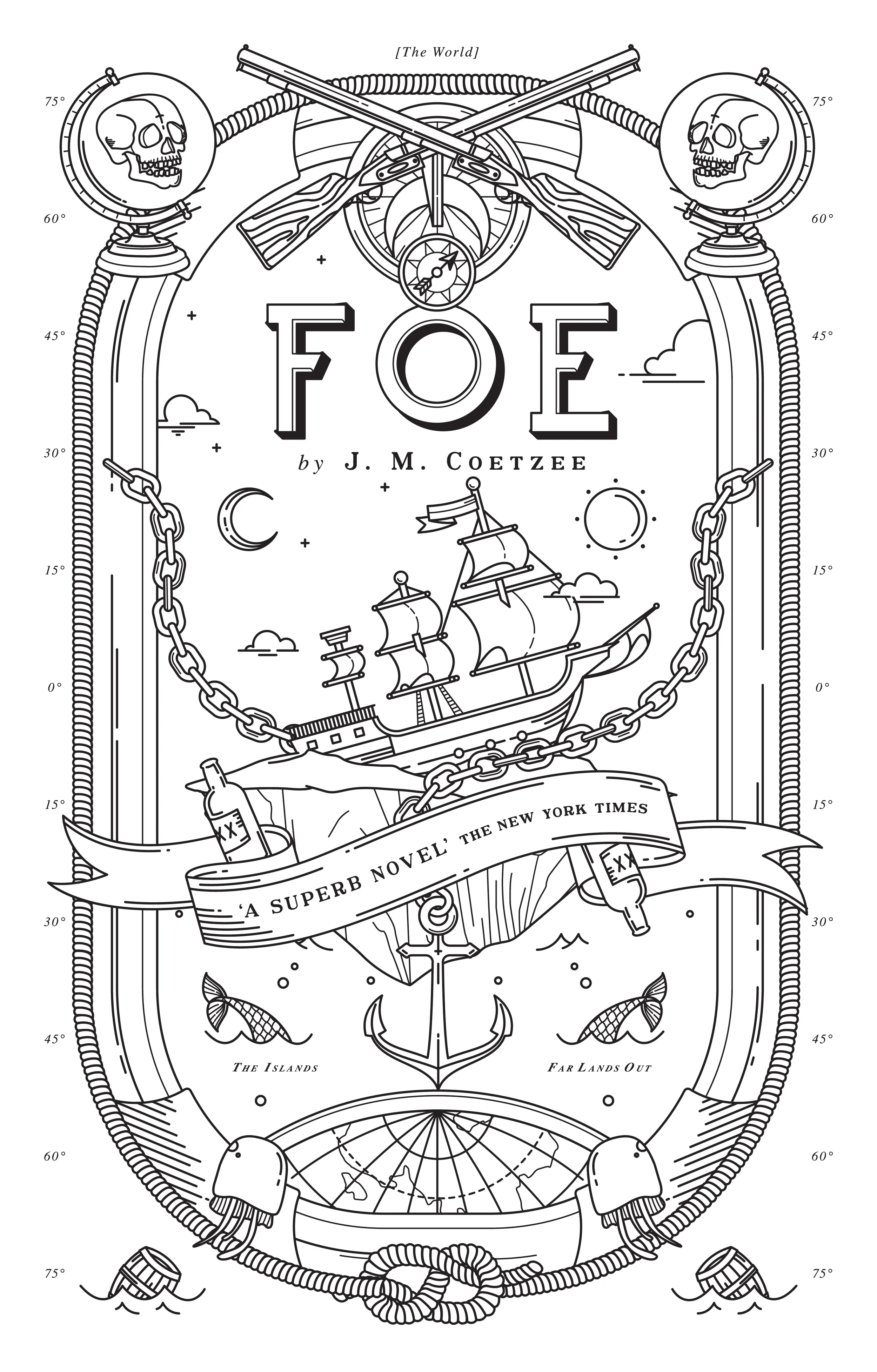 We were commissioned to design the cover of Foe by J. M. Coetzee. Published as a Penguin Essential for the first time by Penguin Books, the cult classic is a satirical reinvention of the story of Robinson Crusoe inspired by mutiny, death and voyage.
